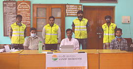In association with Horticulture Department and HOPCOMS, Bangalore a self-funded call center as a service unit was setup by Vandhe Bharatham Foundation and it was a war room which worked during lockdown period involving 30 volunteers operating through helpline No. 8495998495.